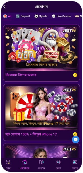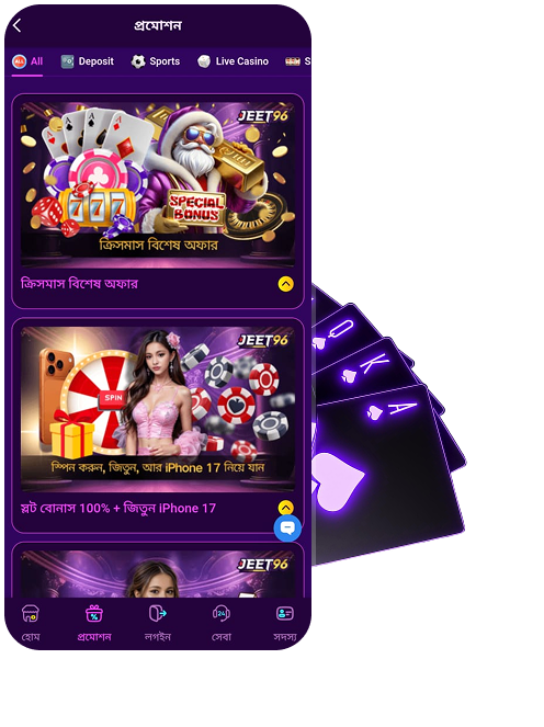 Jeet96 offers special welcome bonuses for new players from Bangladesh. These bonuses are available when the players first join the platform and sign up to start playing the games. Each bonus comes with its own rules and terms, so it’s always a good idea to read them carefully before accepting.